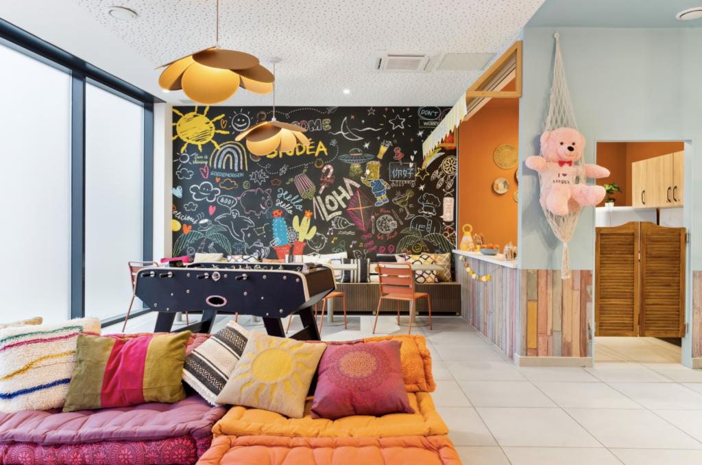 Chaque décoration murale a été conçue sur mesure, en harmonie avec le thème spécifique de chaque résidence. De 3 à 6 mètres de hauteur, ces fresques personnalisées transforment les murs en véritables œuvres d’art, offrant une identité visuelle forte et contemporaine à chaque lieu.